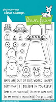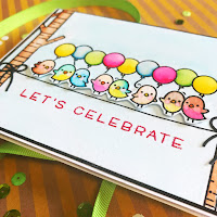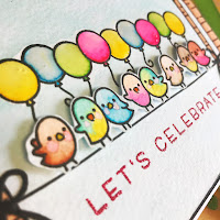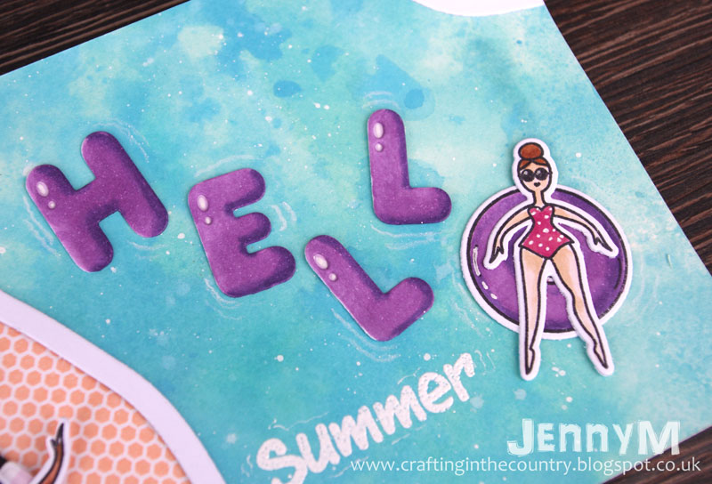 I also stamped sentiments from the Hay there set onto the squares. Then I underlayed the squares with cardstock matching the colour of my sky and added it to a cardbase.