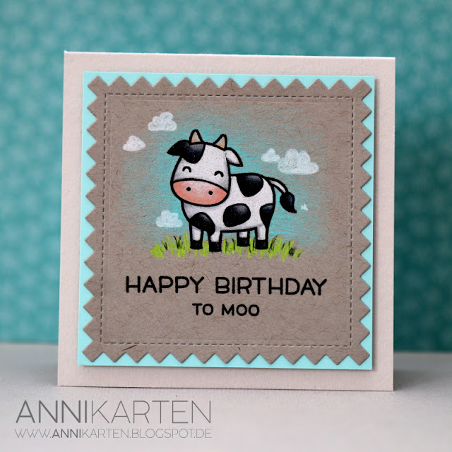 I just recently showed you two cards using Lawn Fawn's Hay There set. I can't stay away from these super cute farmyard critters, I just had to make another two cards with this set.